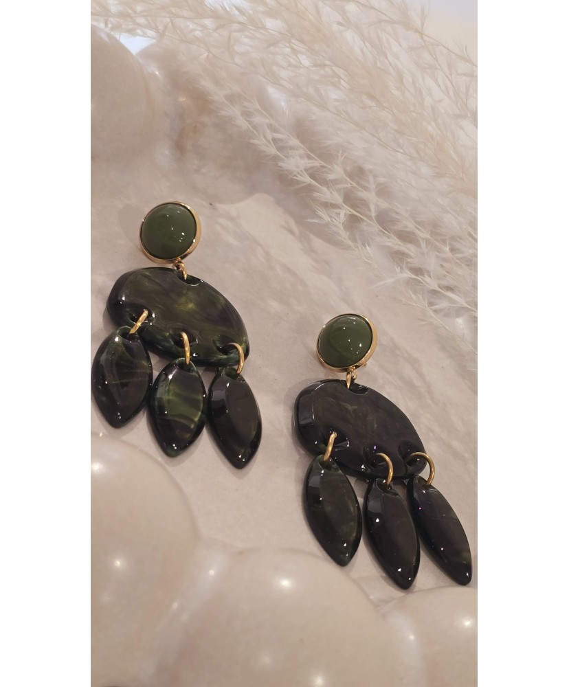 Boucles D’Oreilles Acier “Élégance Verte”