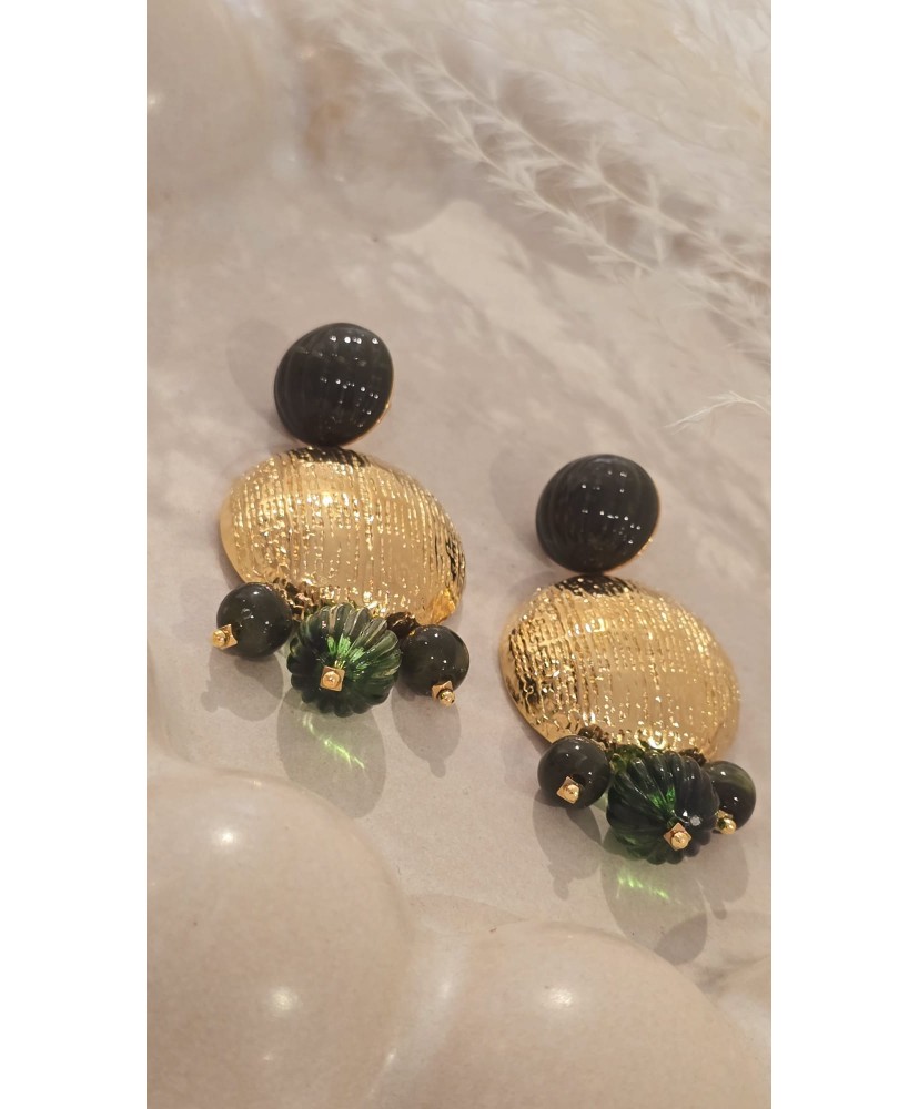 Boucles D’Oreilles Acier “Émeraude Dorée”