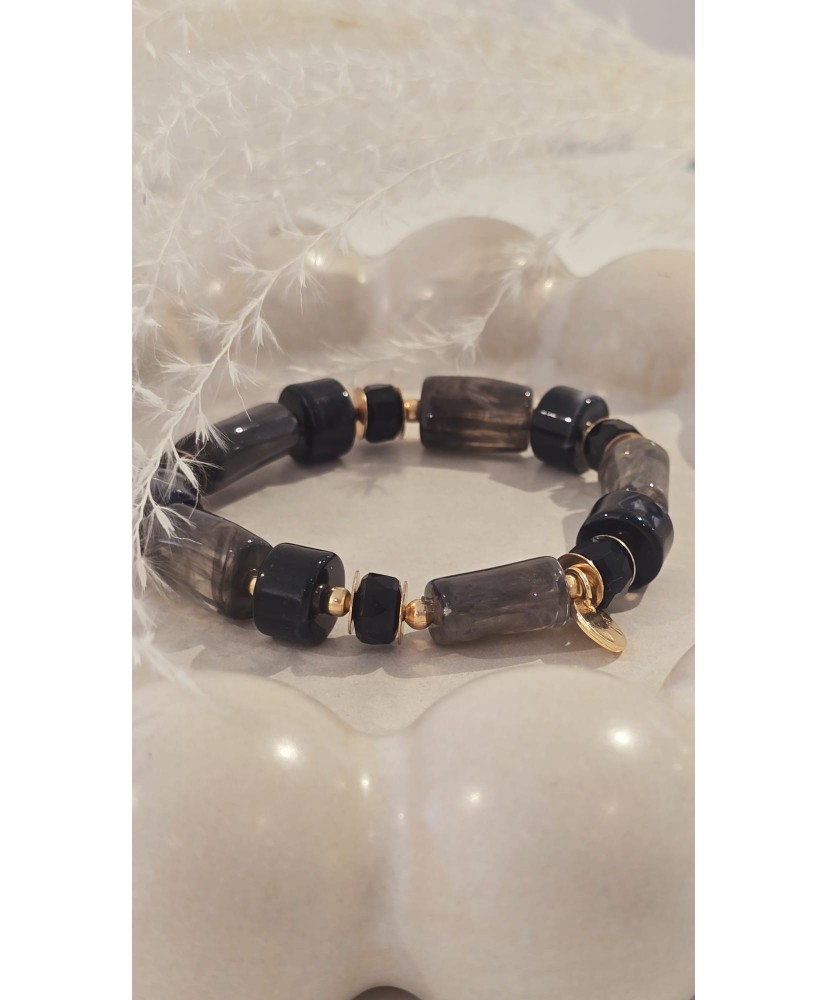 Bracelet Acier Elastiqué Pierre Noir