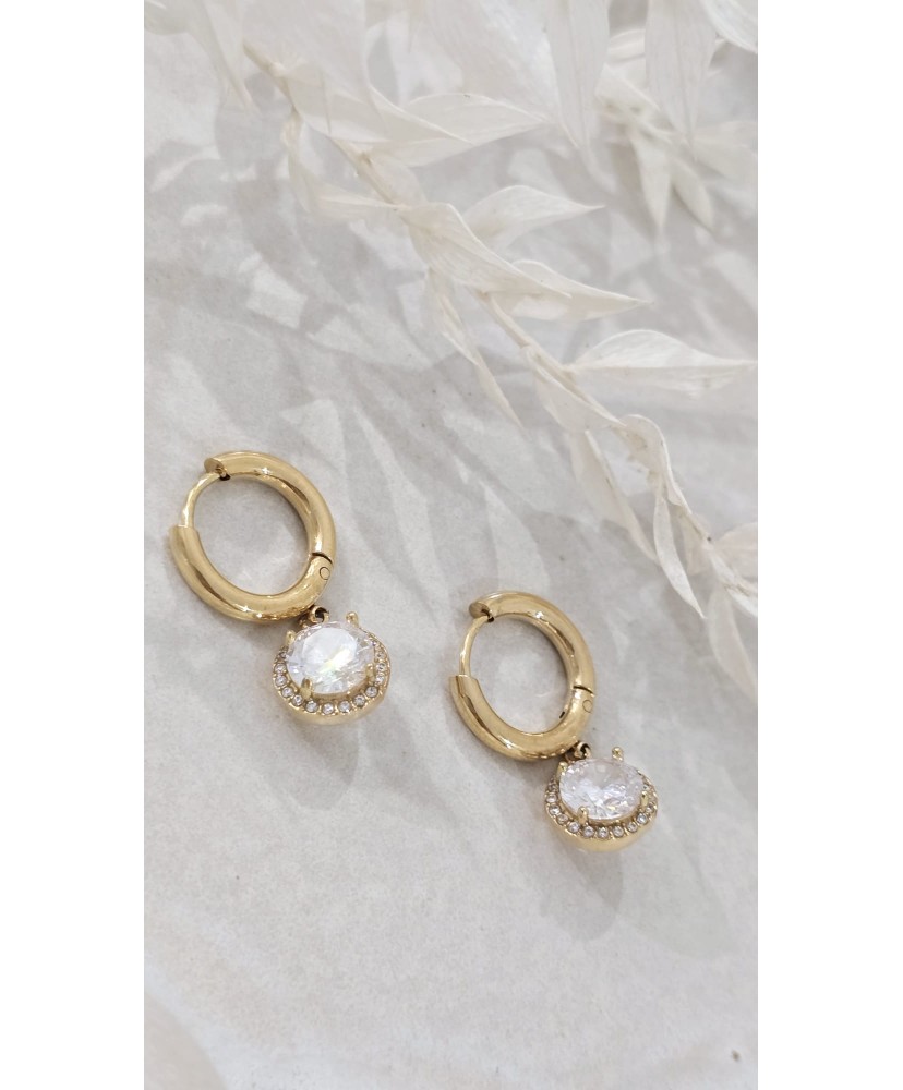Créoles Dorées Acier Pendant Pierres Zircon Halo