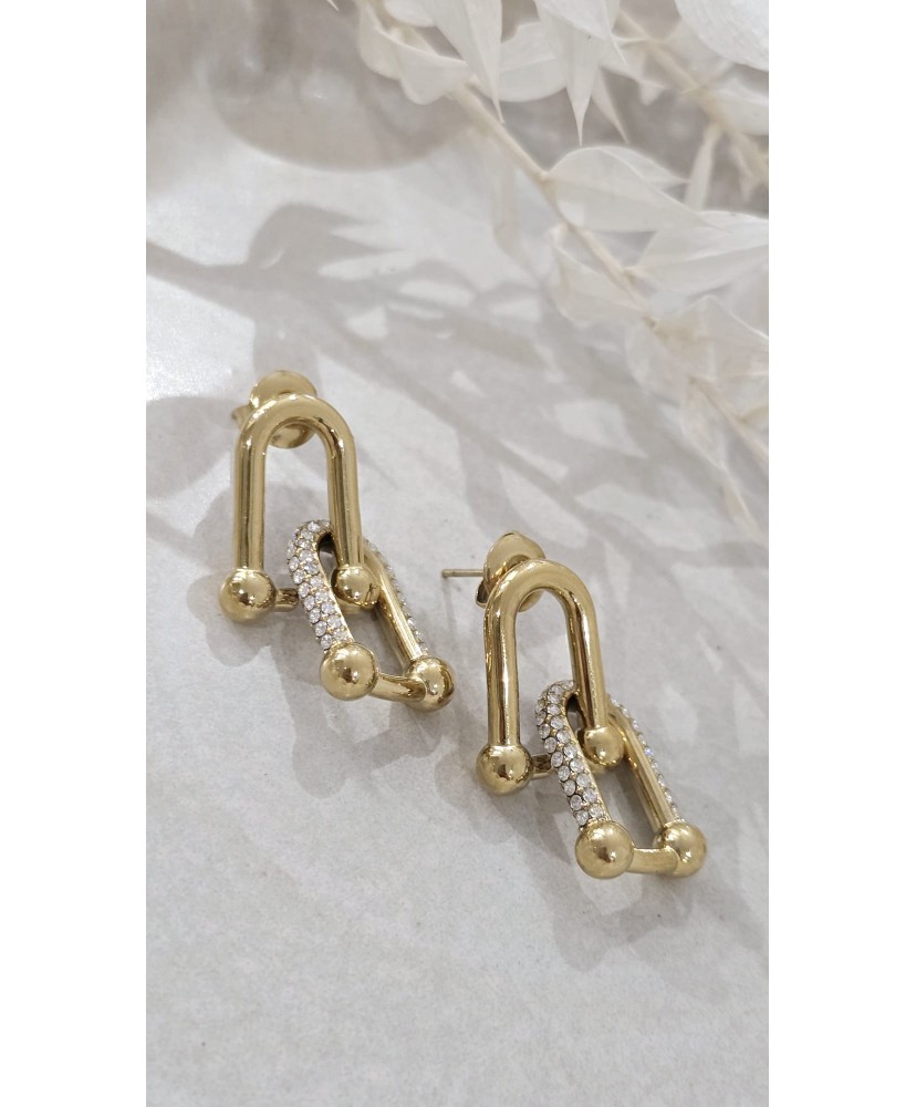 Boucles d’Oreilles Dorées Acier Maillons Modernes & Cristaux