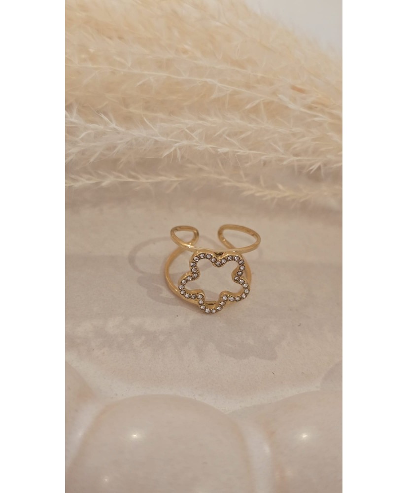 Bague Acier Amovible Dorée "Fleur Strassée"