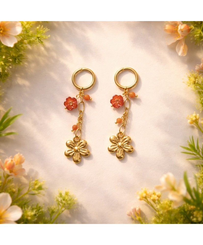 Craquez pour ces boucles d’oreilles pleines de pep’s avec leurs détails corail et leur fleur dorée brillante 🌸✨