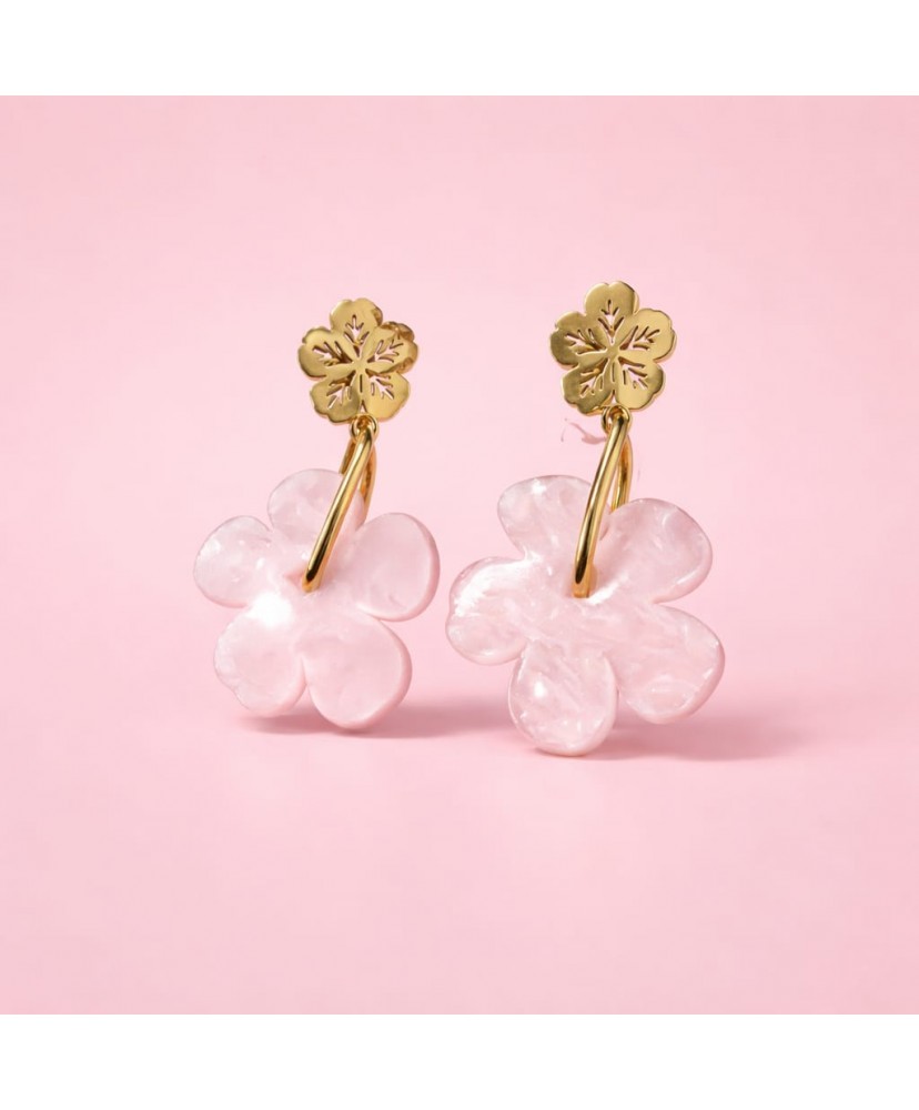 Apportez une touche de douceur et de féminité à votre look avec ces magnifiques boucles d’oreilles en acier inoxydable doré, sublimées par une fleur rose délicatement nacrée 🌸✨
