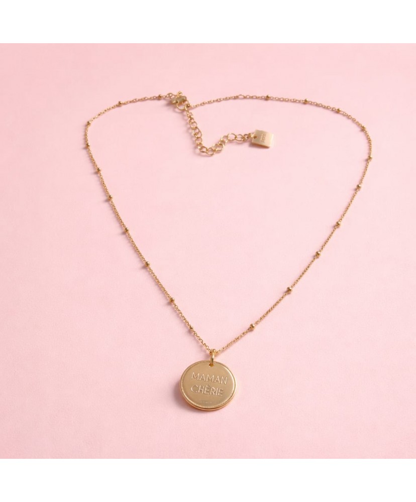Ce collier délicat met à l’honneur le lien unique avec maman grâce à sa médaille gravée “Maman Chérie”.