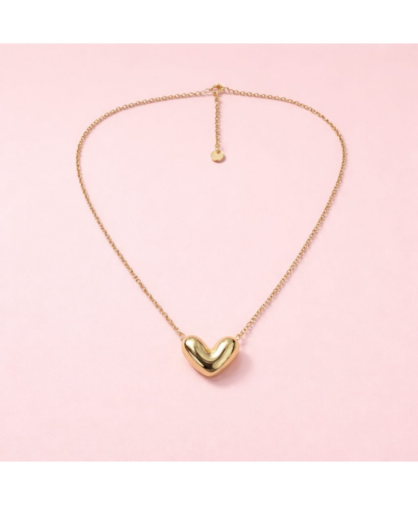 Ce collier séduit par son pendentif cœur bombé au fini lisse et lumineux, monté sur une chaîne fine pour un rendu délicat et féminin.