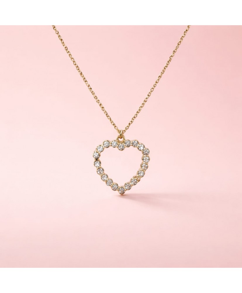 Ce collier met en valeur un pendentif en forme de cœur entièrement serti de strass pour un effet brillant et féminin.