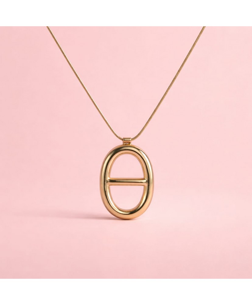 Son pendentif ovale avec détail central apporte une touche contemporaine et originale à votre tenue.