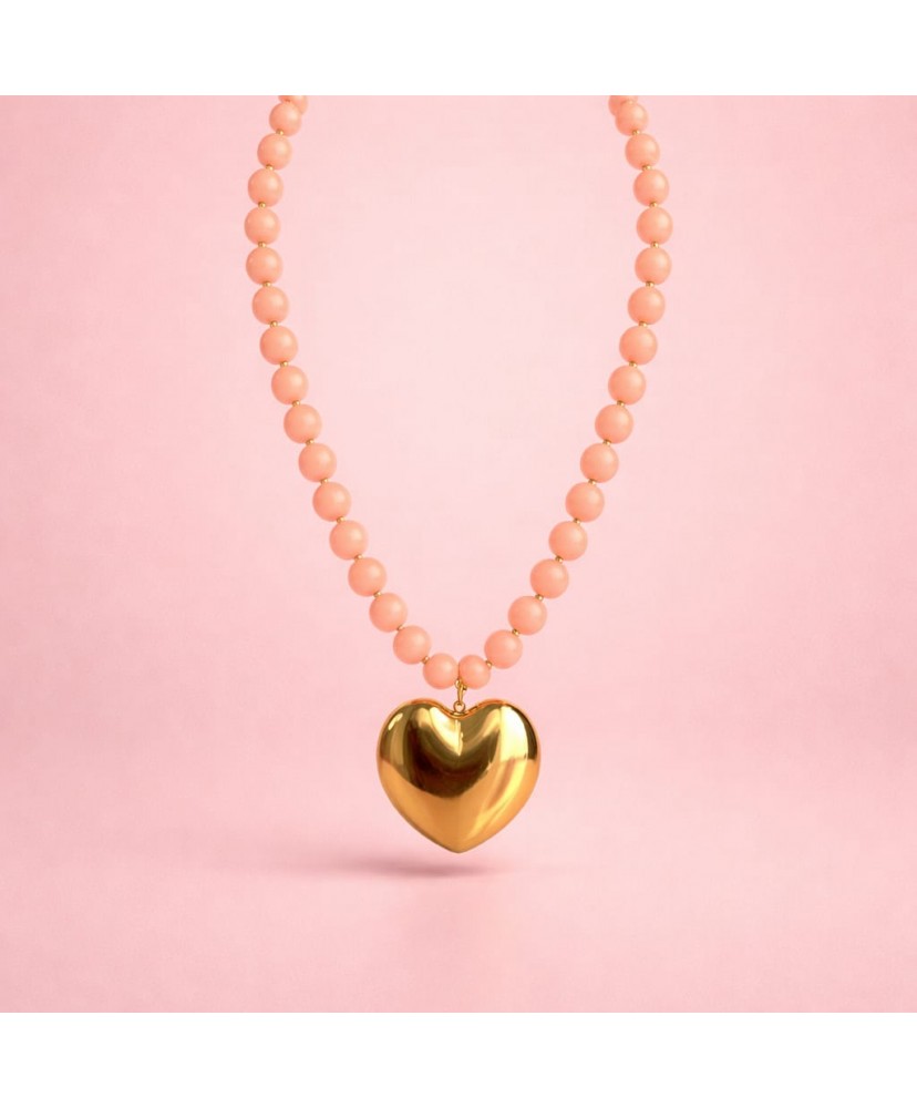 Les perles rosées associées à un cœur doré créent un contraste délicat et féminin.