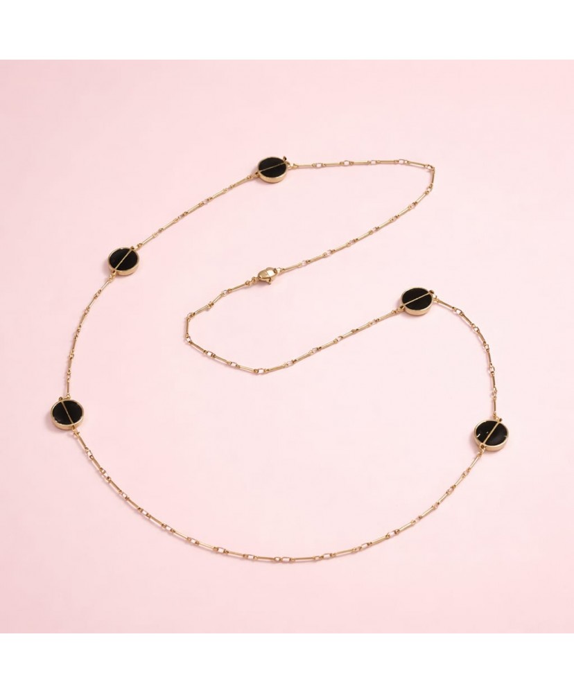 Ses pastilles noires apportent une touche chic et structurée à ce sautoir délicat.