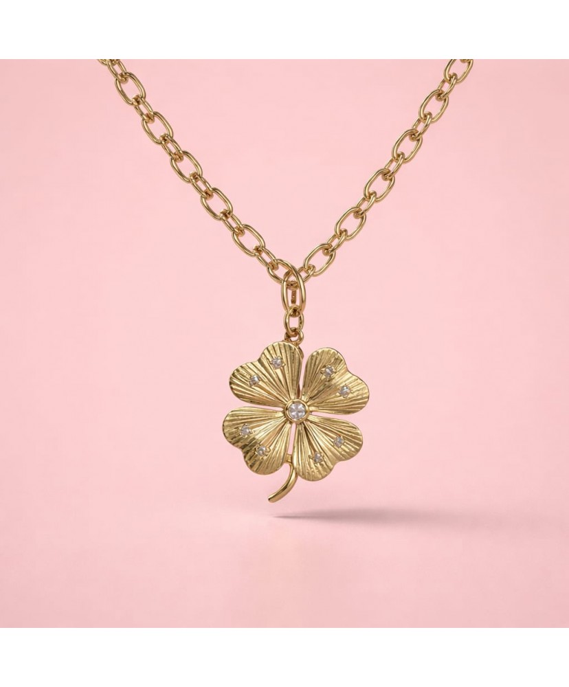 Son pendentif trèfle délicatement travaillé apporte une touche de chance et de féminité.