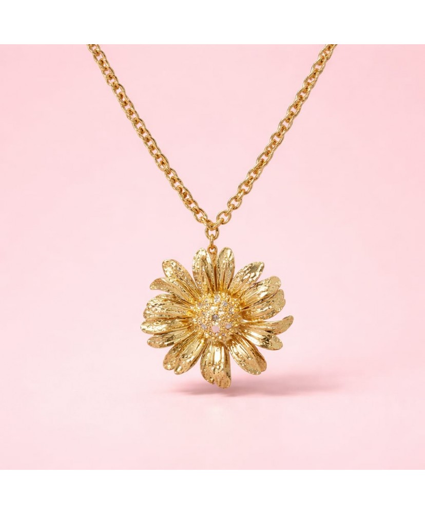Son pendentif en forme de fleur texturée capte la lumière pour un effet éclatant.