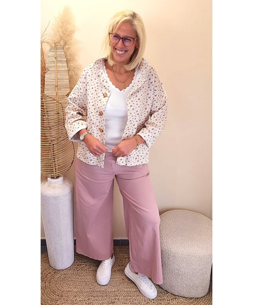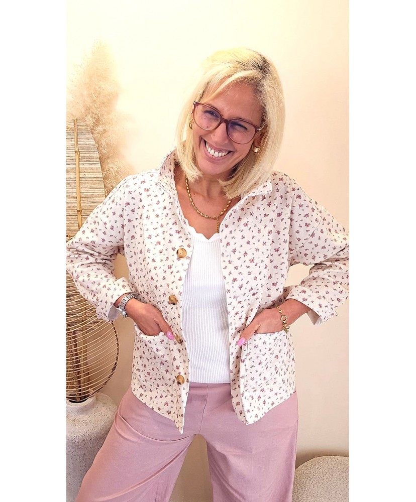 Cette jolie veste légère séduit par son imprimé floral délicat sur fond écru, qui lui donne un charme naturel et très féminin. Facile à porter au quotidien, elle apporte instantanément une note élégante et printanière à n’importe quelle tenue.