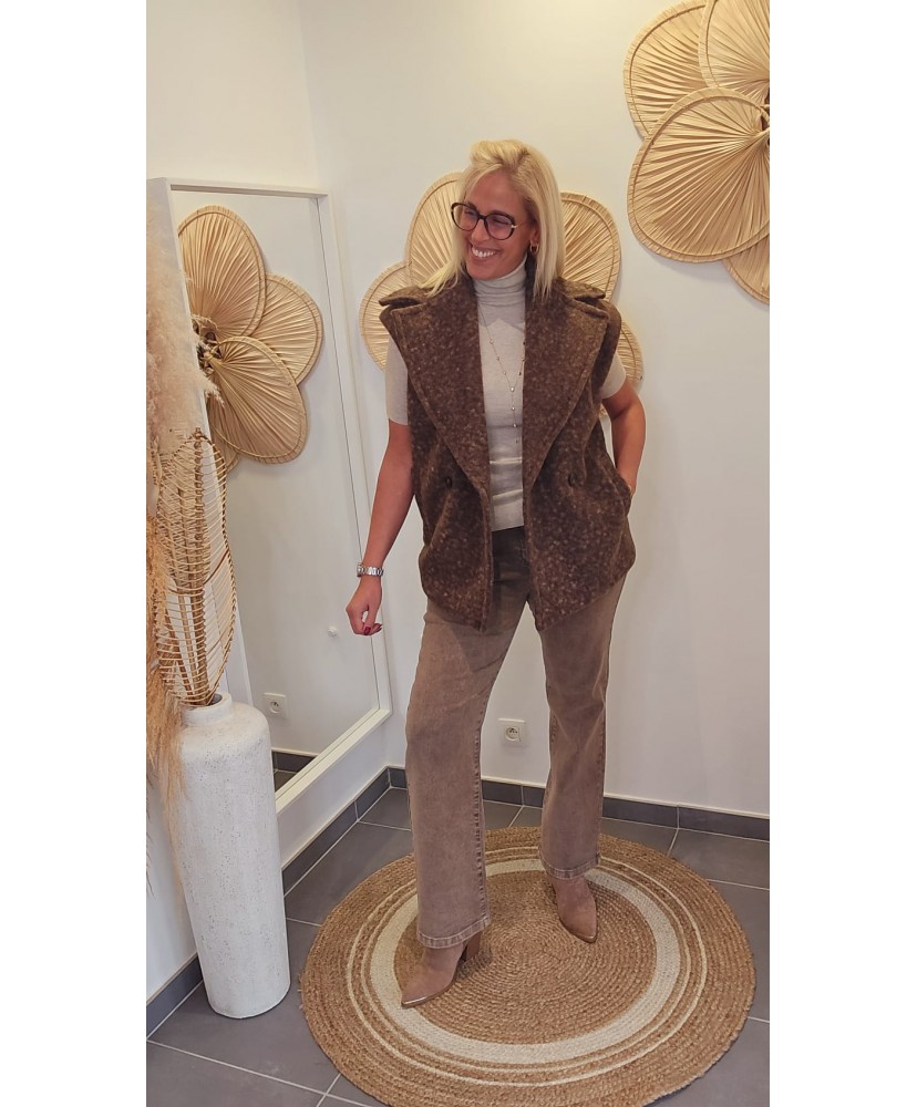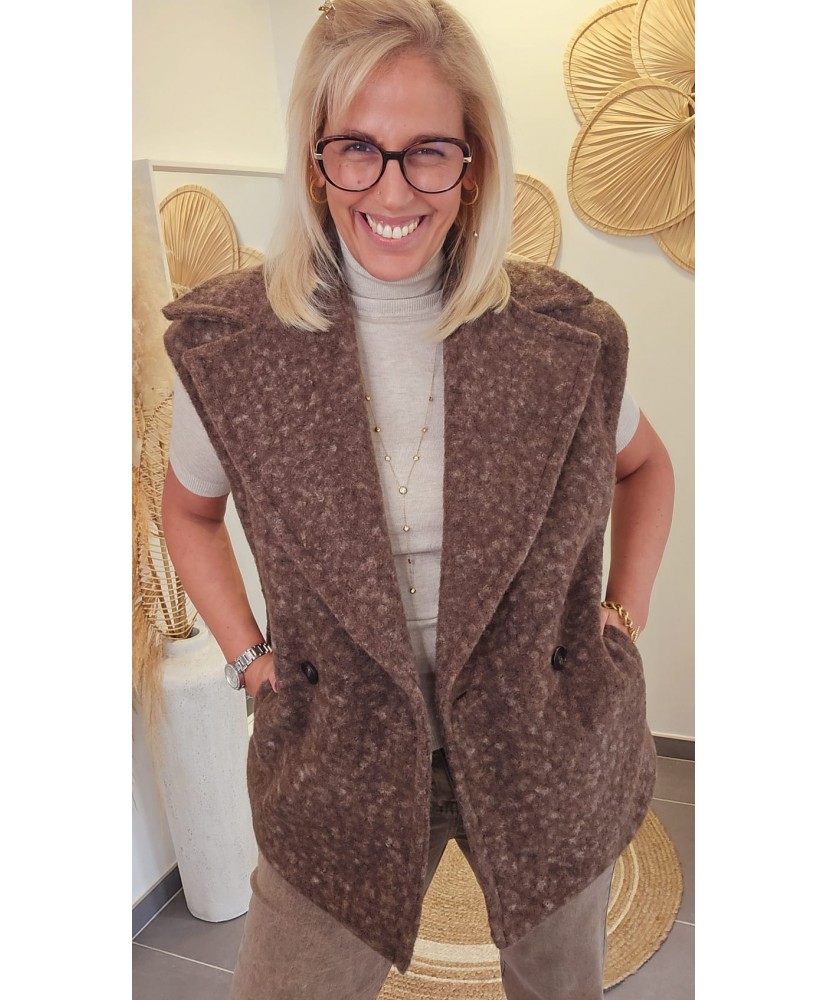 Ce gilet sans manches en laine bouclée est la pièce parfaite pour affronter la saison avec style. Sa texture douce et épaisse apporte une belle chaleur tout en offrant un look moderne et raffiné.