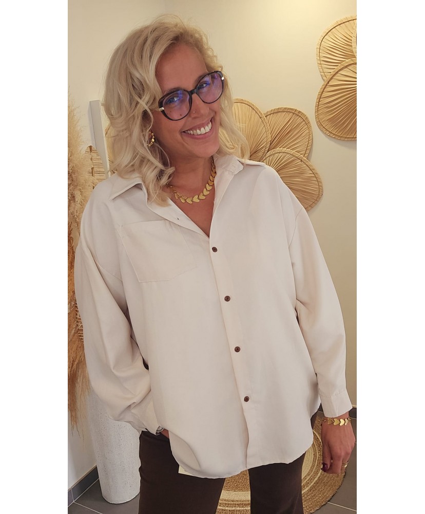 La chemise parfaite pour un look chic et décontracté ! Cette chemise oversize beige et son foulard séduit par sa coupe fluide et moderne, idéale pour un style à la fois élégant et confortable.