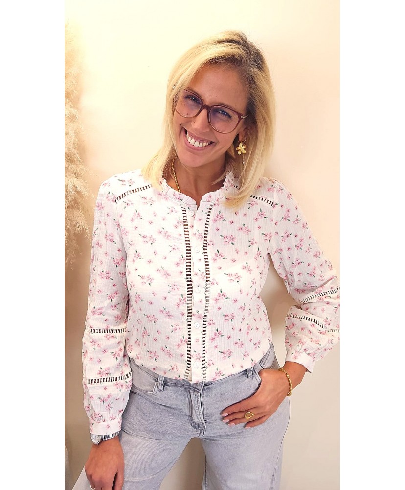 Les détails ajourés et les finissions raffinées viennent structurer la blouse tout en conservant une allure bohème chic. Sa coupe féminine et agréable à porter en fait une pièce facile à associer, aussi bien avec un jean qu’un pantalon plus habillé.