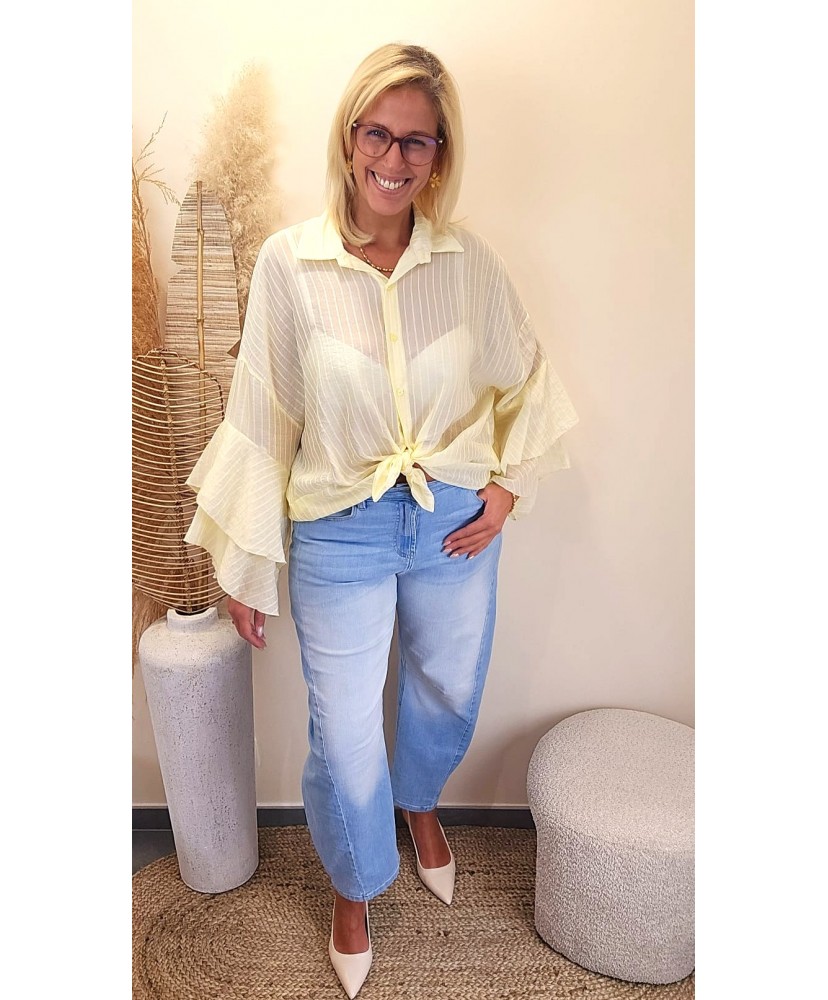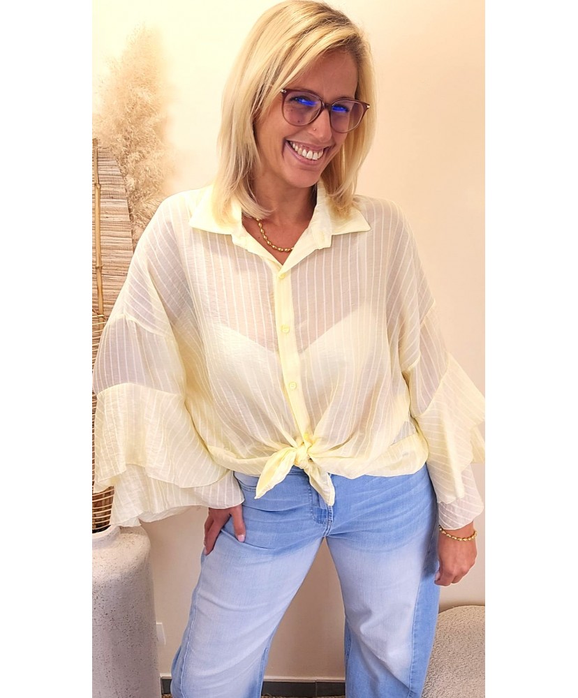 Blouse Jaune Rayée Nouée Élégance - Sara