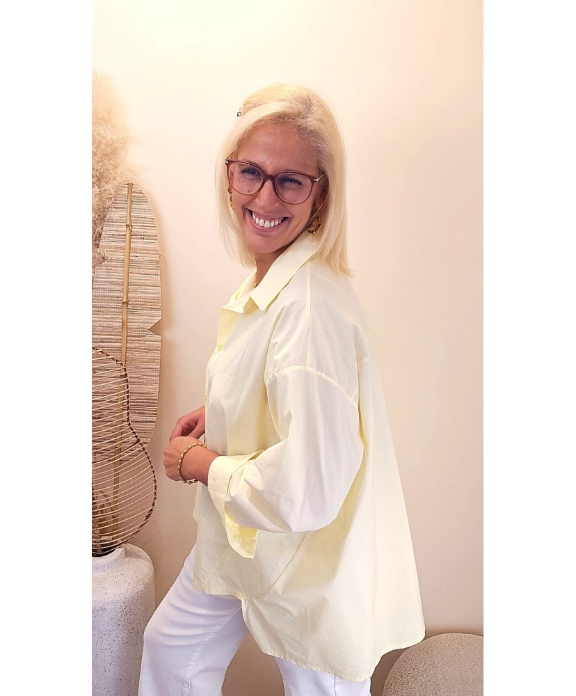 Élégante, lumineuse et résolument féminine, la Chemise Jaune Pastel séduit par sa teinte rose poudré délicate qui illumine instantanément le teint. Sa coupe oversize apporte une allure moderne et confortable, tout en conservant une belle structure.