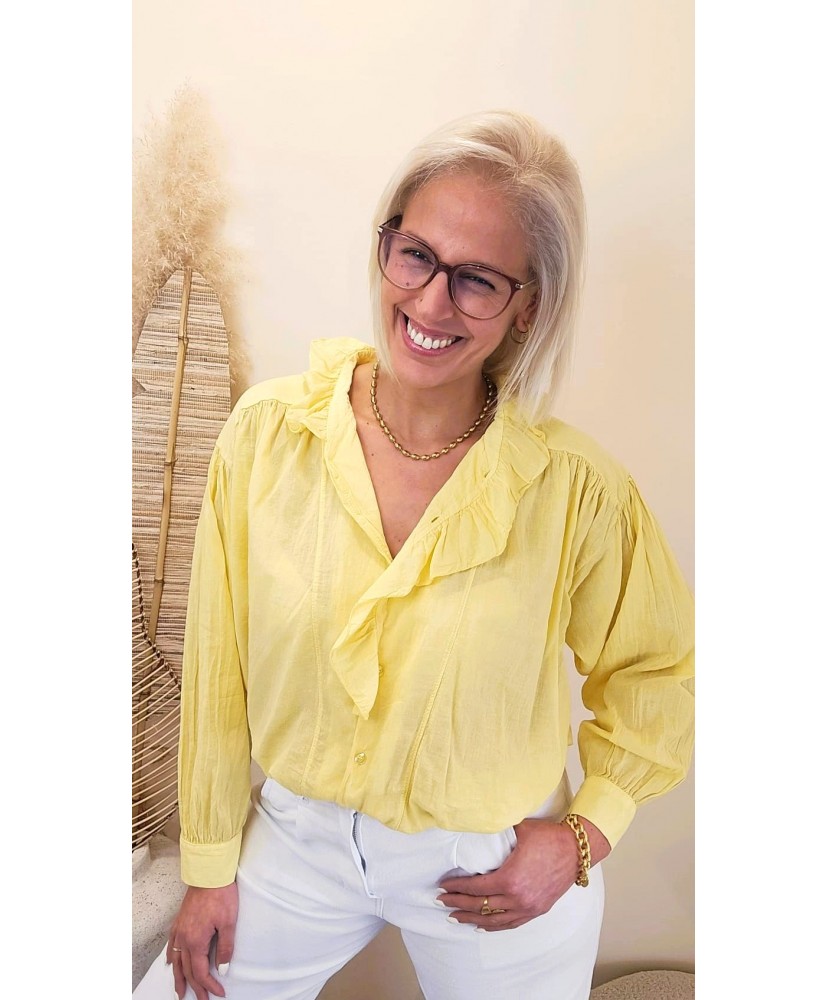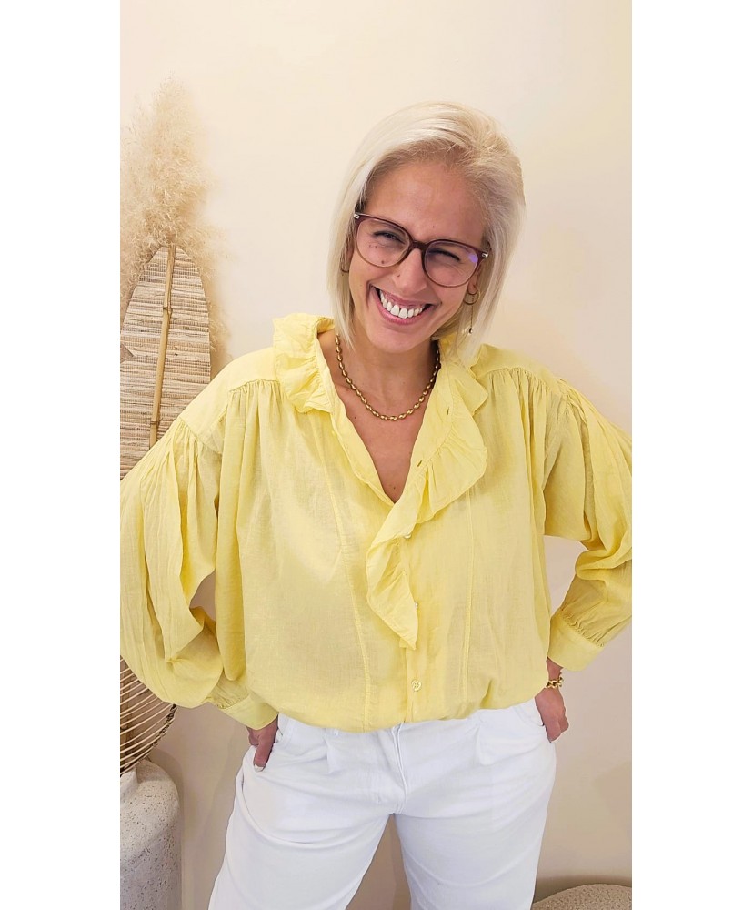 La chemise Volantée Lemon Glow séduit par sa couleur jaune lumineuse et ses jolis détails délicats.