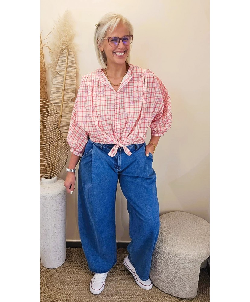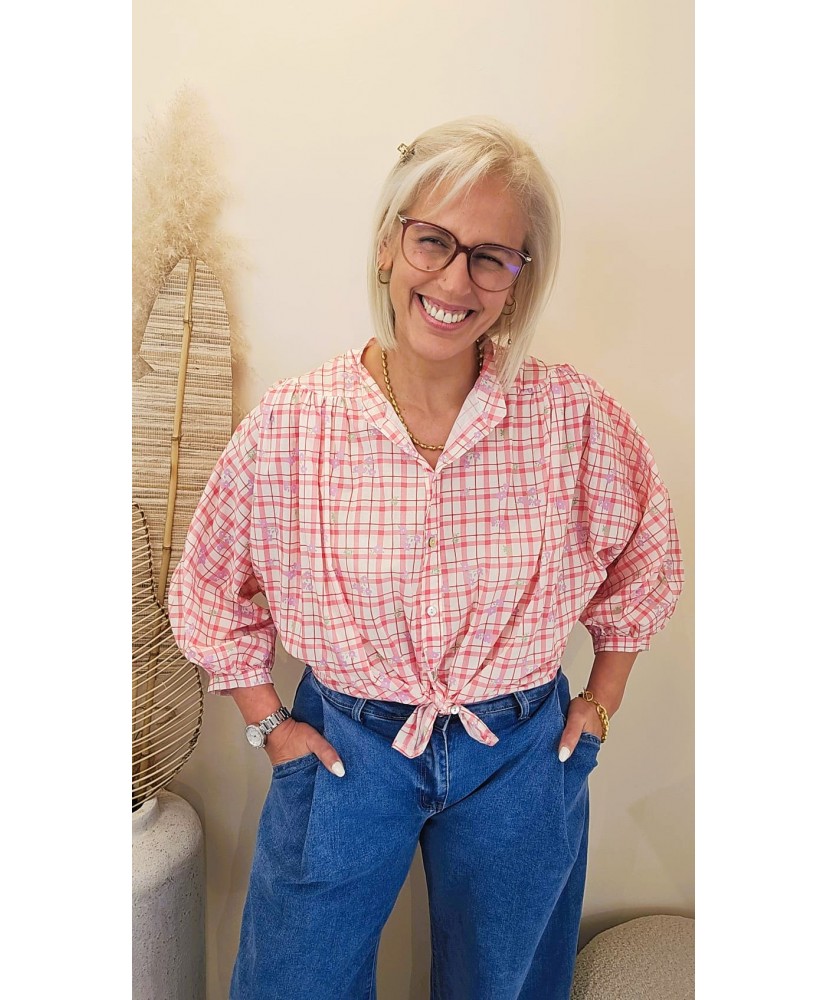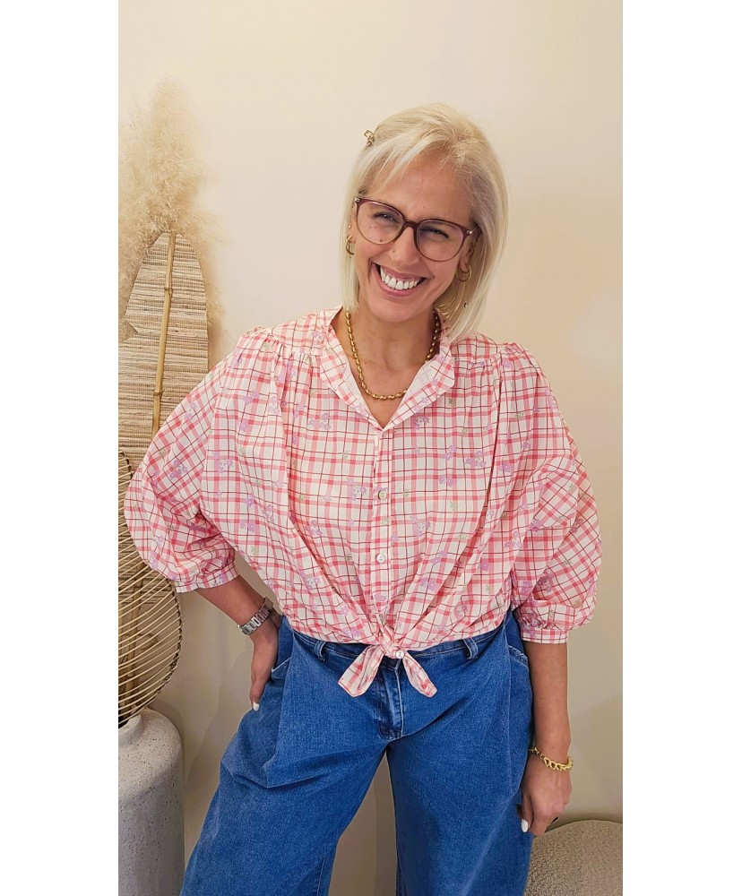 Chemise Flower Grid Pink - Elise
