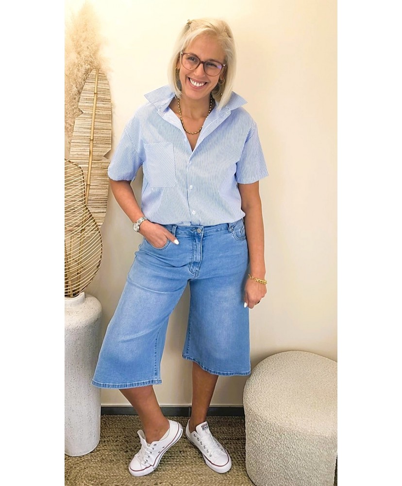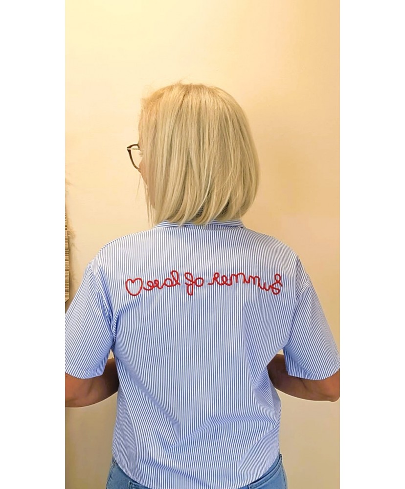 La Chemise "Summer of Love" séduit par ses fines rayures délicates et surtout par son message brodé dans le dos qui apporte une touche unique et pleine de caractère.