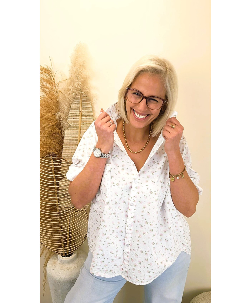 Avec son imprimé floral délicat dans des tons doux, cette chemise apporte fraîcheur et élégance à toutes tes tenues 🌸