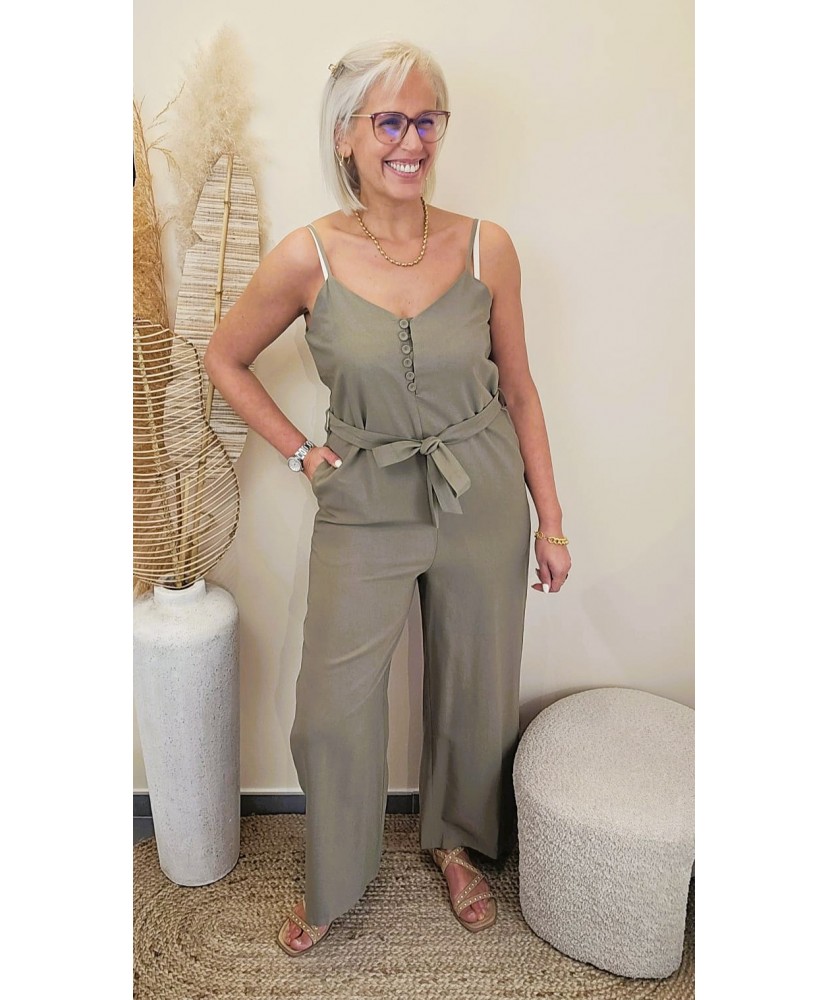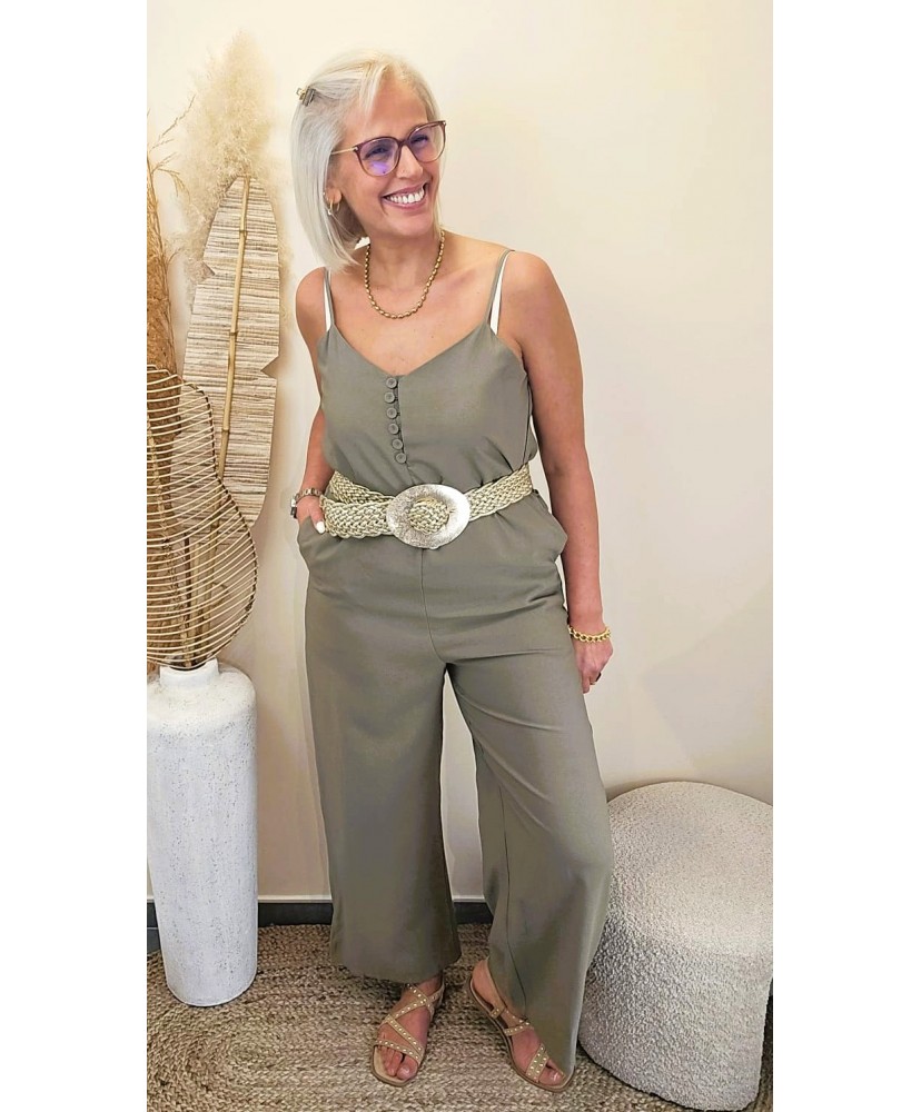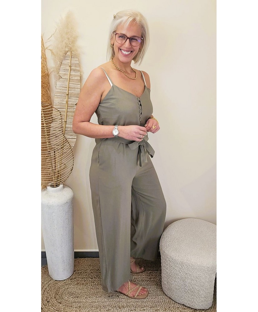 La Combinaison Soft Flow Kaki séduit par sa coupe fluide et sa matière légère, idéale pour un look à la fois chic, confortable et moderne.