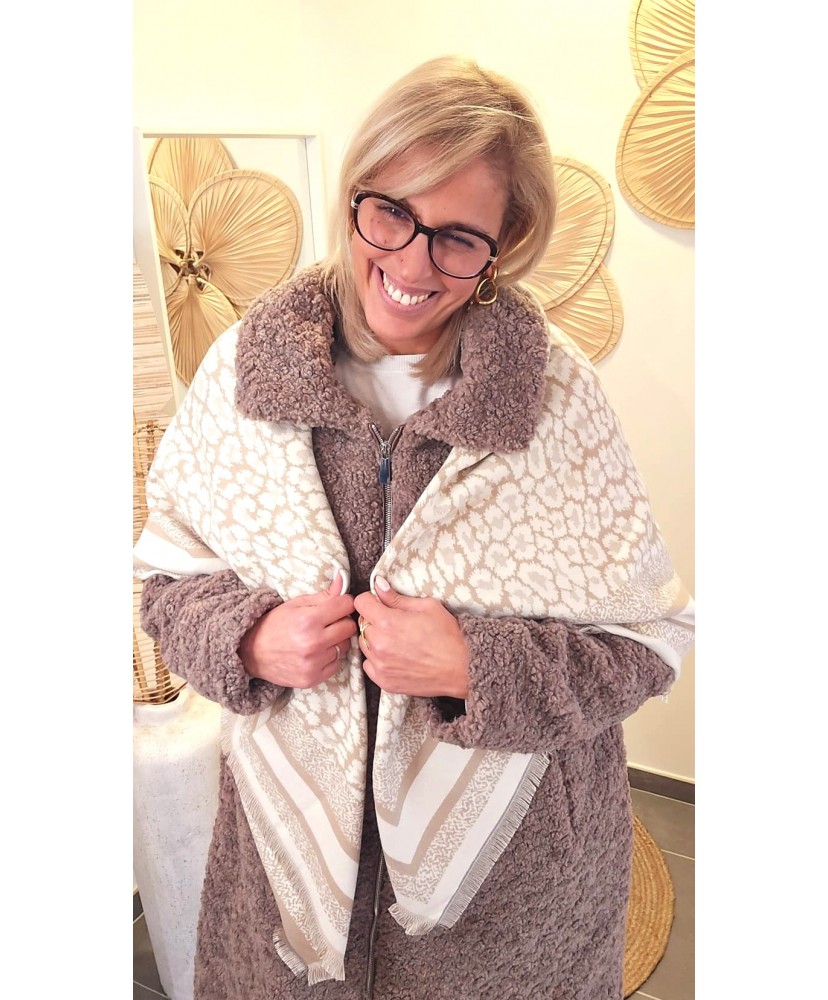 Écharpe Cachemire Beige Léopard Réversible