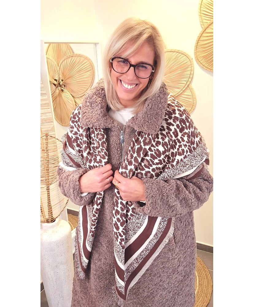 Écharpe Cachemire Chocolat Léopard Réversible