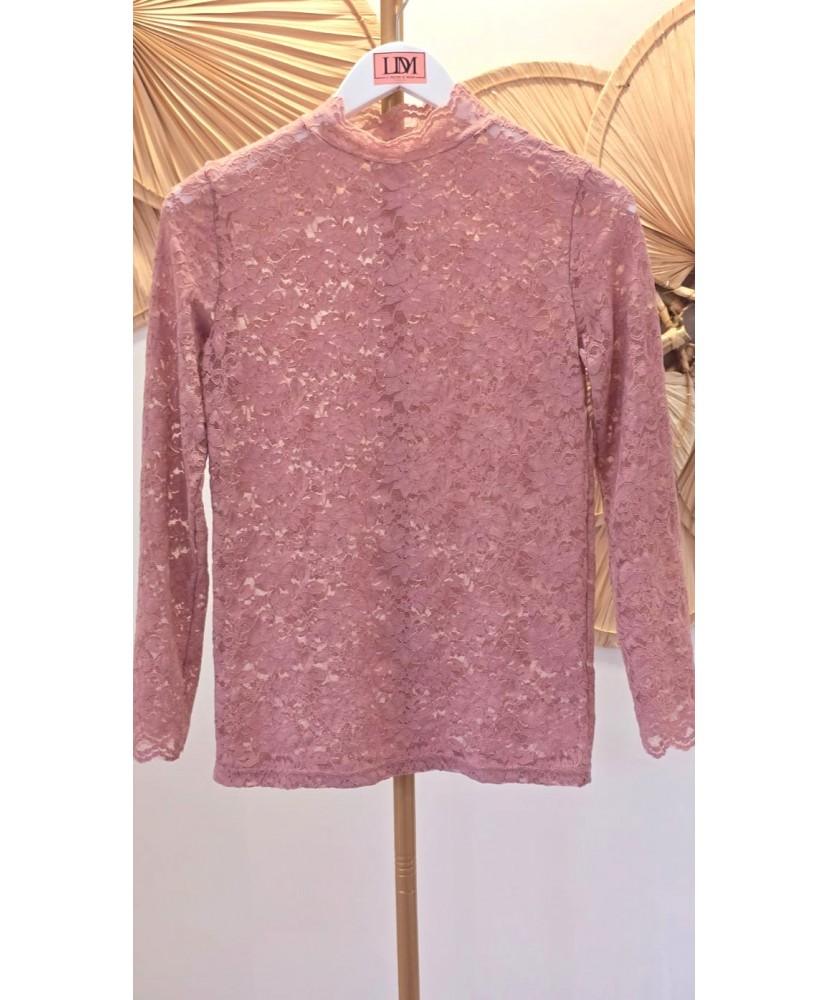 Féminin, délicat et intemporel : ce sous-pull en dentelle vieux rose est une pièce coup de cœur à avoir absolument dans sa garde-robe.