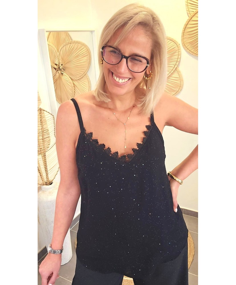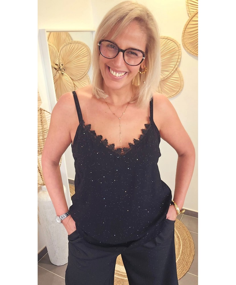 Le décolleté en V est délicatement bordé d’une dentelle fine et élégante, qui apporte une touche glamour sans en faire trop. Grâce à ses bretelles réglables, il s’adapte parfaitement à votre silhouette pour un maintien confortable et un tombé impeccable.
