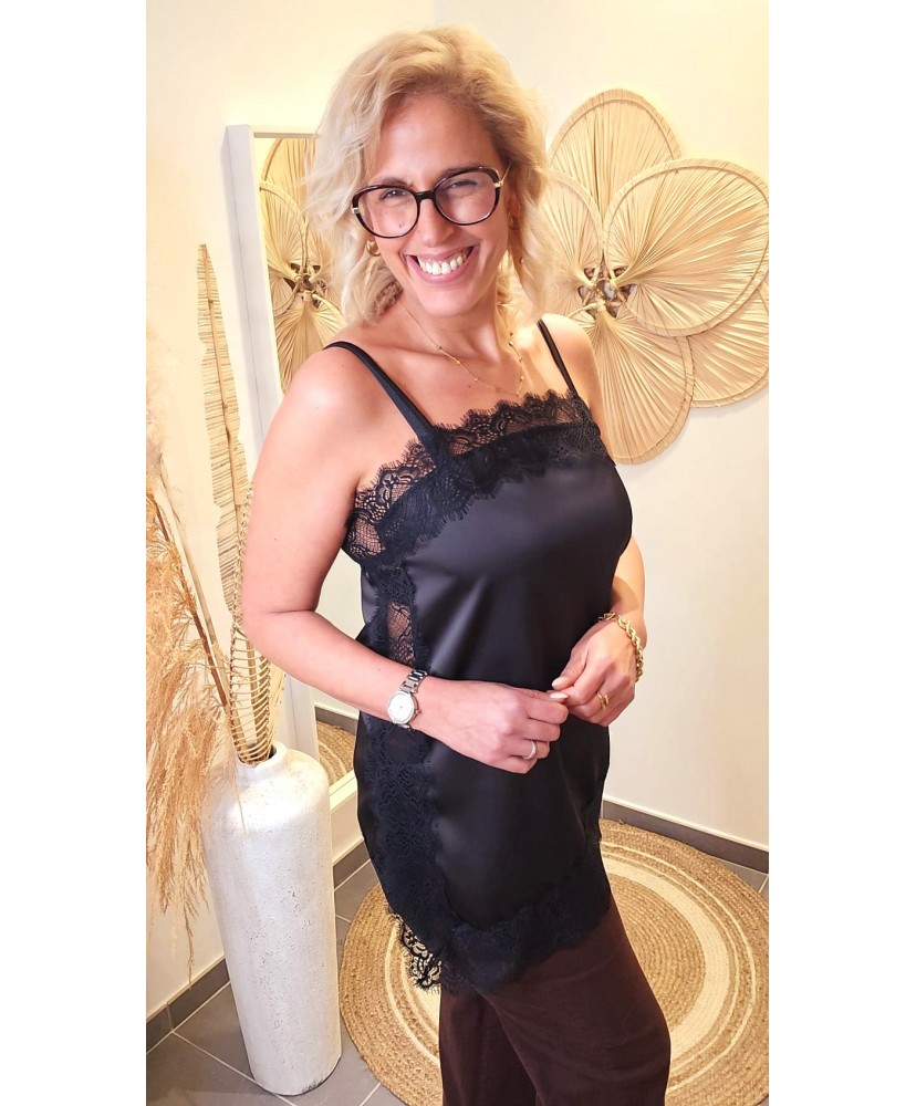 Avec ses fines bretelles et sa matière douce et légère, il se porte aussi bien seul qu’en superposition sous un blazer, un gilet ou une veste. Idéal pour les looks habillés comme pour ajouter une note sophistiquée à une tenue plus casual.