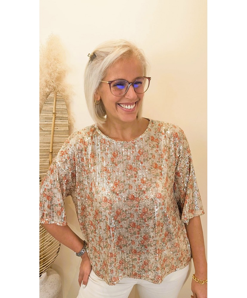 Le haut sequins Sunset Glow sublime votre silhouette avec son jeu de sequins scintillants aux nuances chaudes et lumineuses.