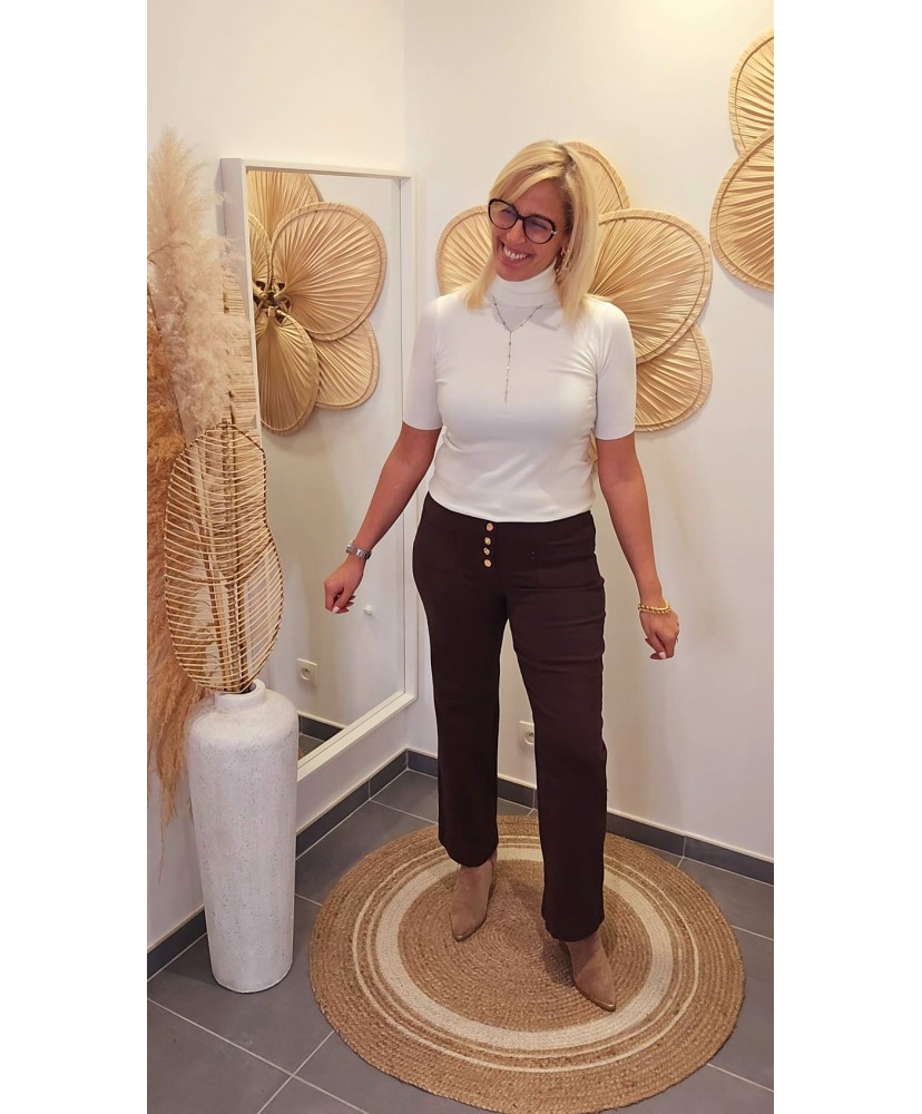 Jeans Chocolat Droite & Boutons Colorés - Faustine