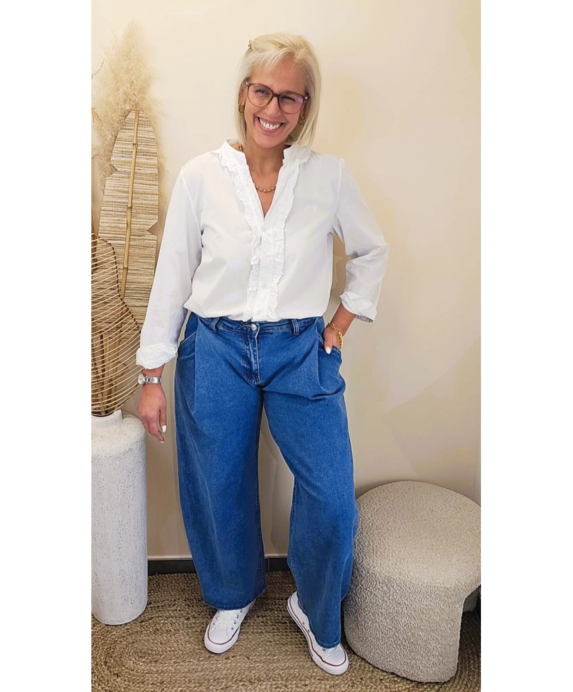 Le Jeans Ballon Denim Icon séduit par sa coupe ballon ultra moderne, légèrement ample sur les hanches et resserrée en bas pour une silhouette structurée et stylée.