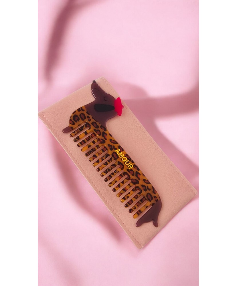 Peigne “Amour Teckel” / Pochette Rose