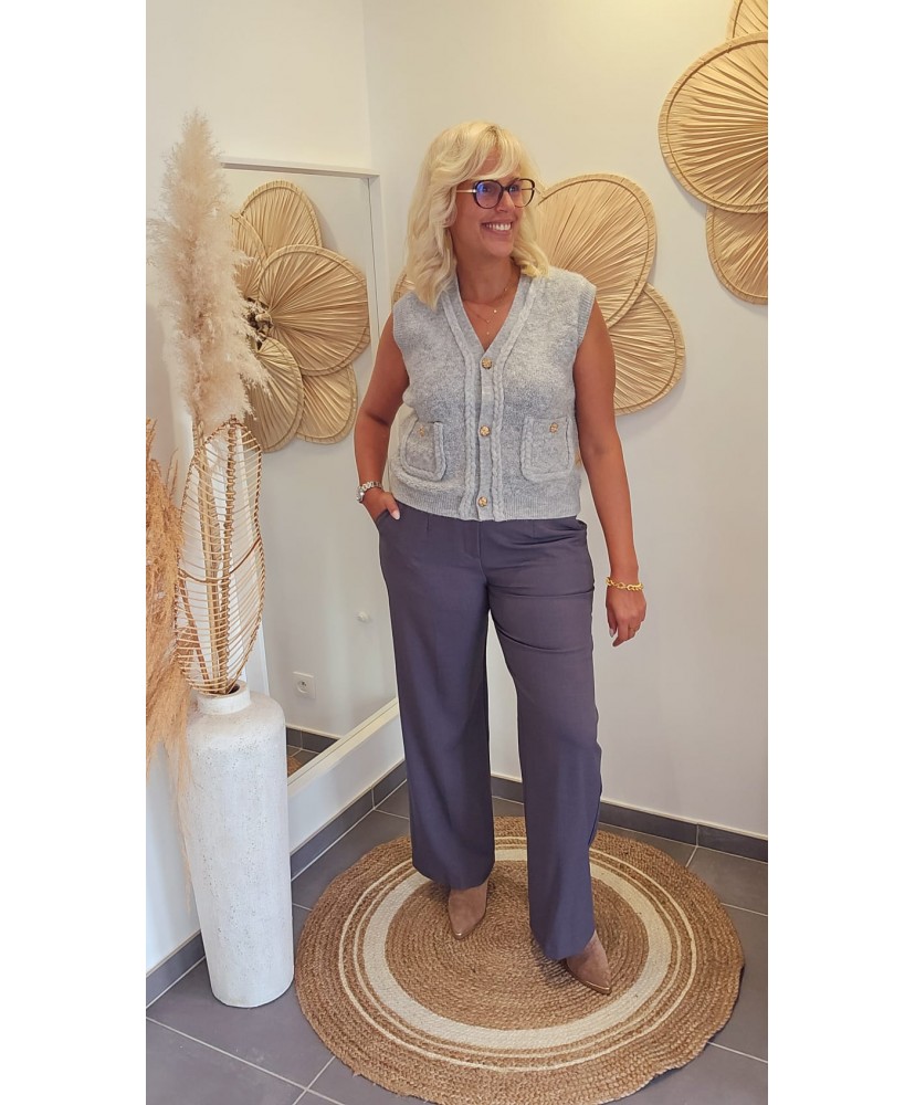 Apportez une touche chic et cosy à vos tenues avec ce joli gilet sans manches en maille bouclette. Sa coupe droite et ses finitions soignées en font une pièce tendance et facile à porter, seule ou superposée sur une chemise ou un pull fin.