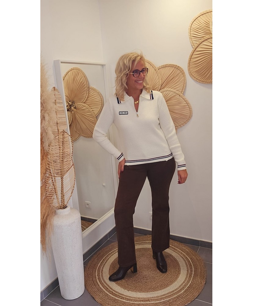 Pull Ecru Zippé à Col Polo “Love Love” - Melissa