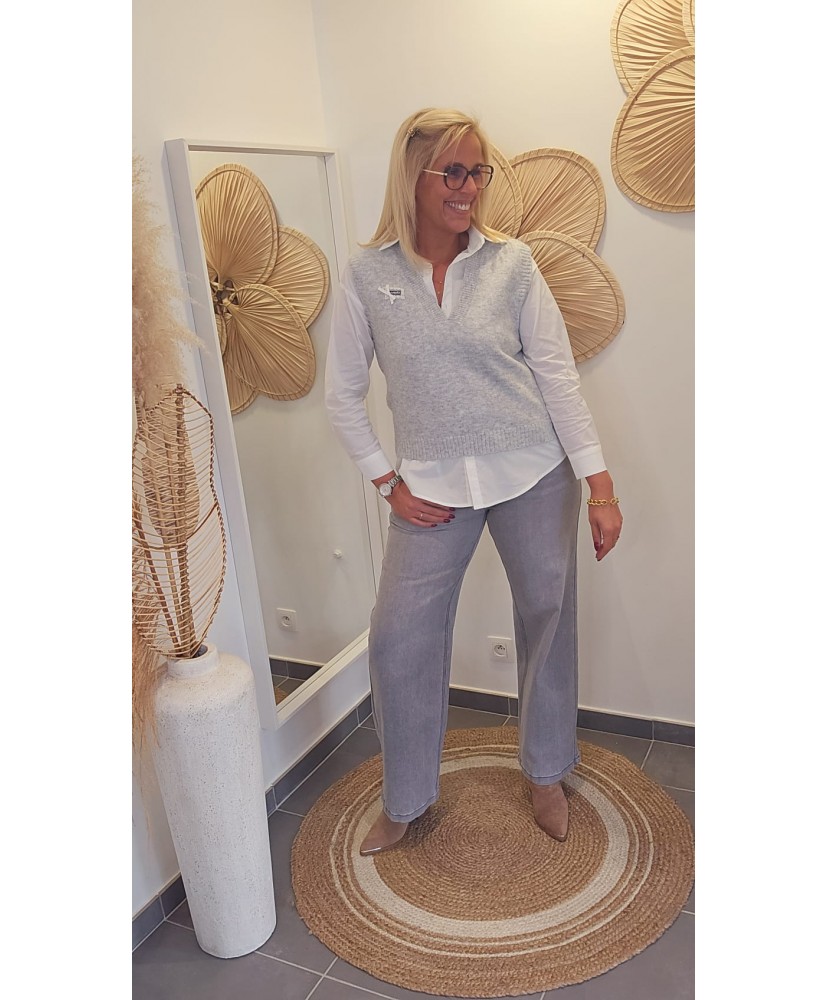 Pull Maille Sans Manches Gris "Chance" - Lilia