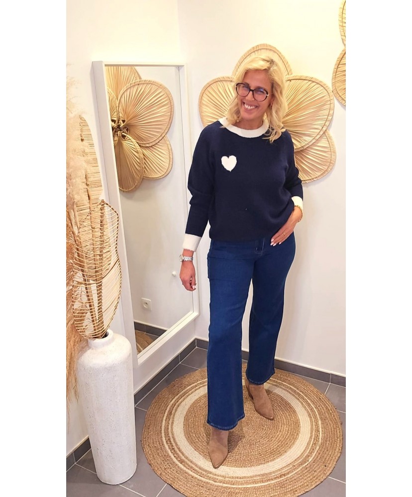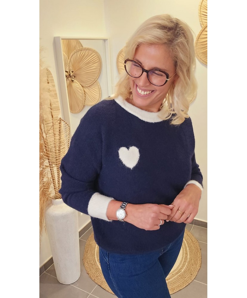Pull Fluffy Marine "Cœur Blanc" - Alice