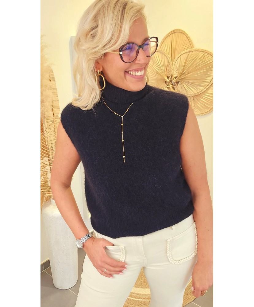 Pull Noir Sans Manches & 52% Alpaga - Eve