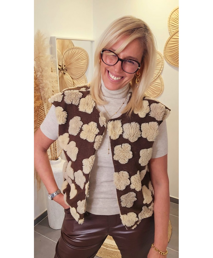 Gilet Sans Manches Patchwork Douillet Chocolat - Marie