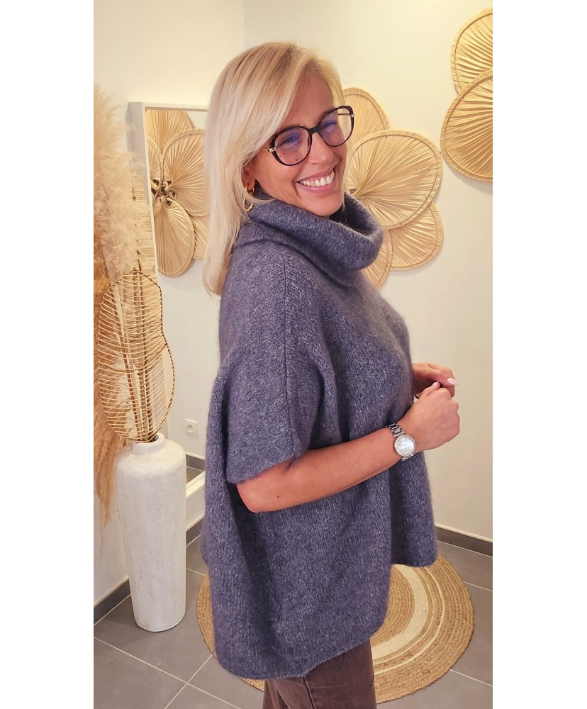 Doté d’un col roulé généreux, il protège parfaitement du froid tout en donnant une allure chic et cosy. Ses manches courtes tombantes permettent un look superposé très élégant sur une chemise ou un sous-pull.