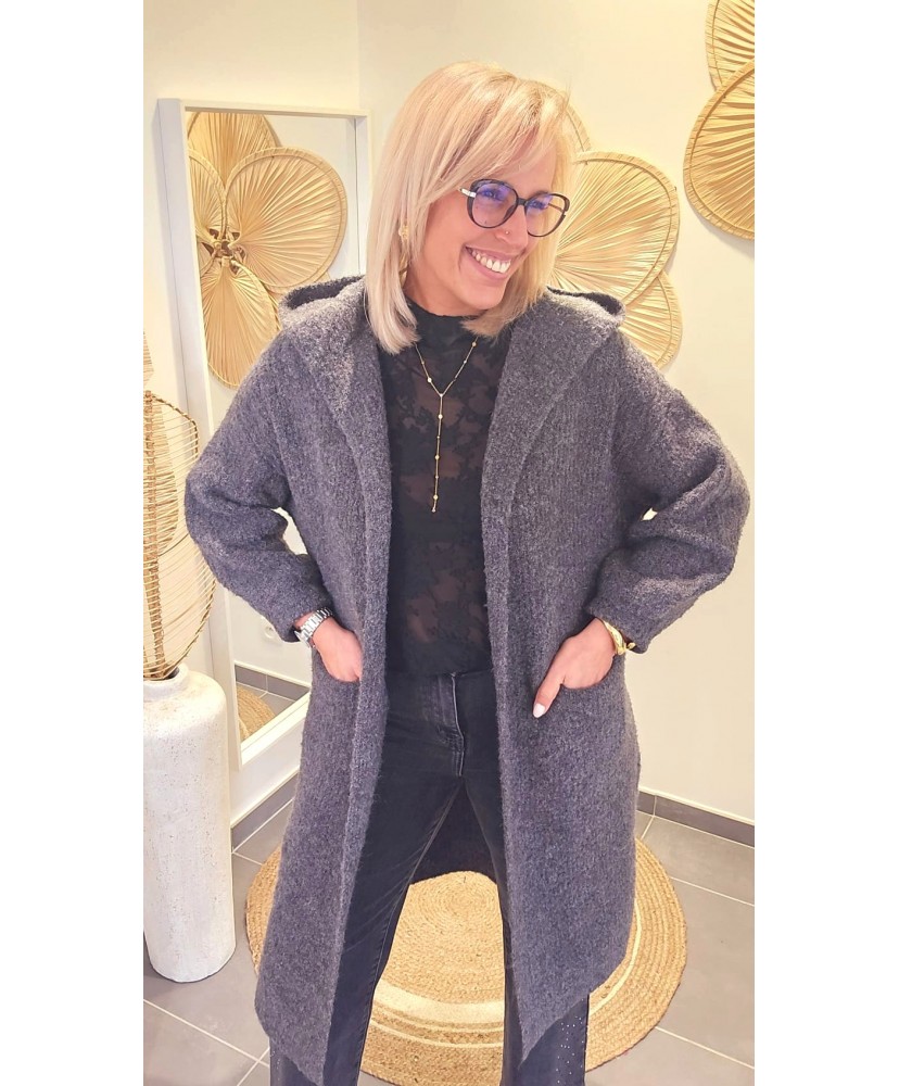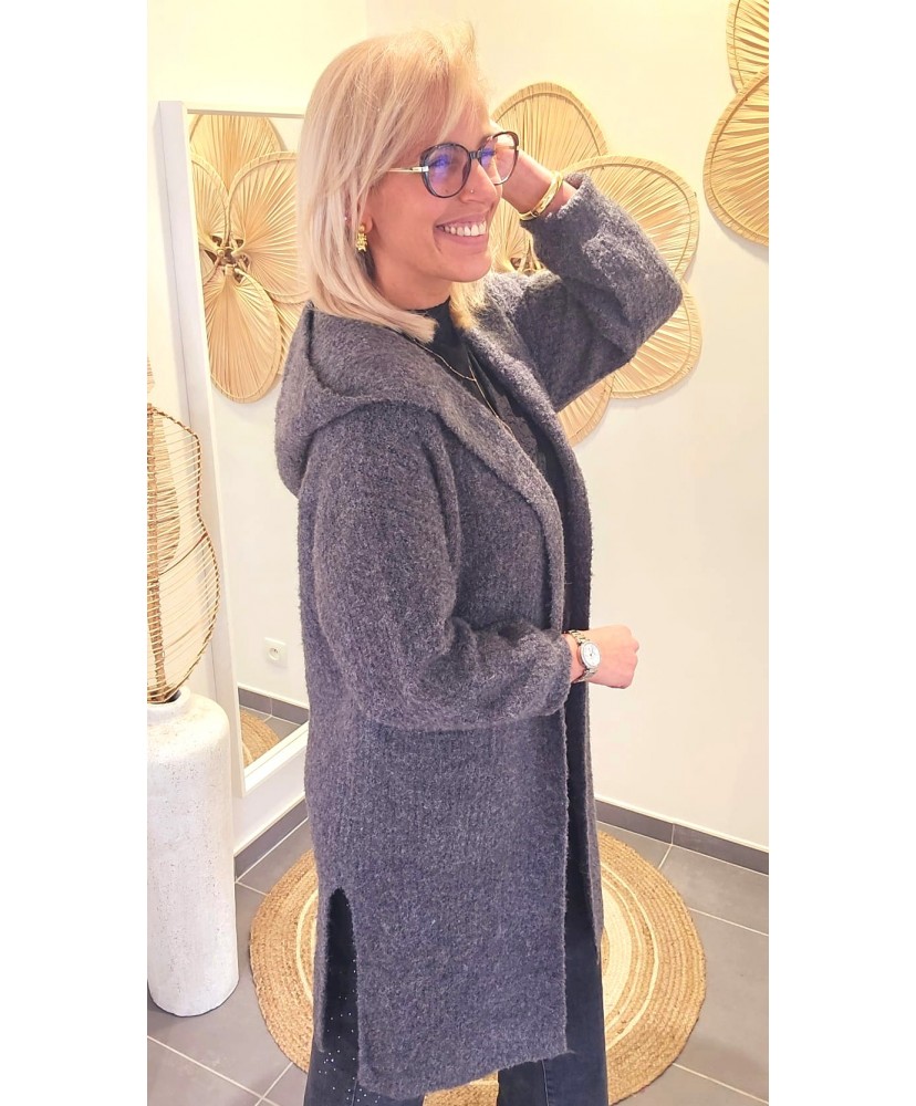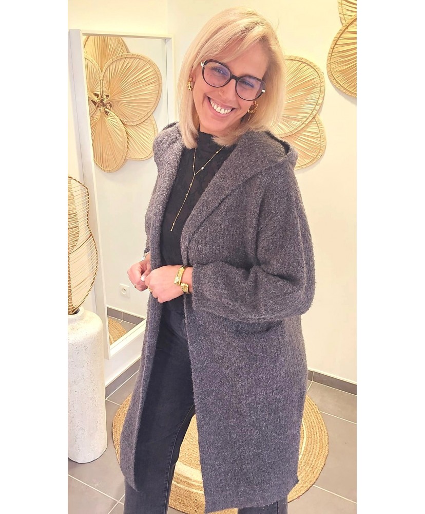 Gilet Gris à Capuche Maille Cocooning – Sarah