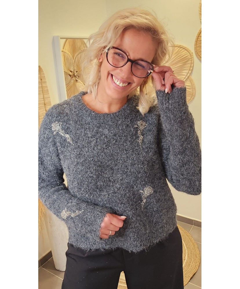 Pull Cosy Rose Strass - Olivia Infos