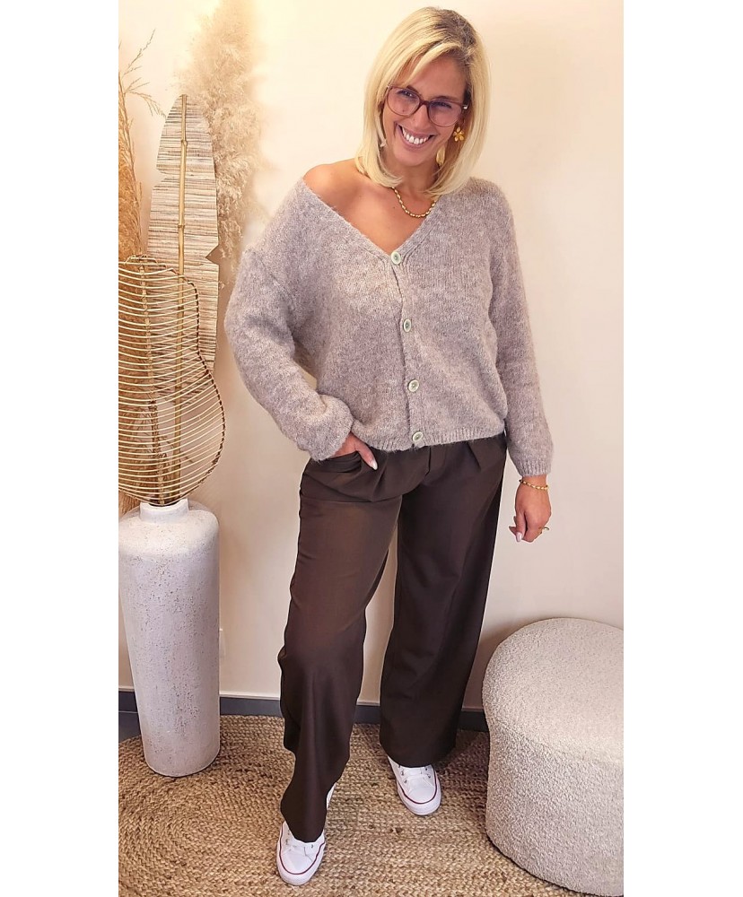 Ce gilet Taupe Éclat séduit par sa teinte subtilement lumineuse, un taupe électrifié qui apporte de la profondeur et du caractère tout en restant facile à assortir.