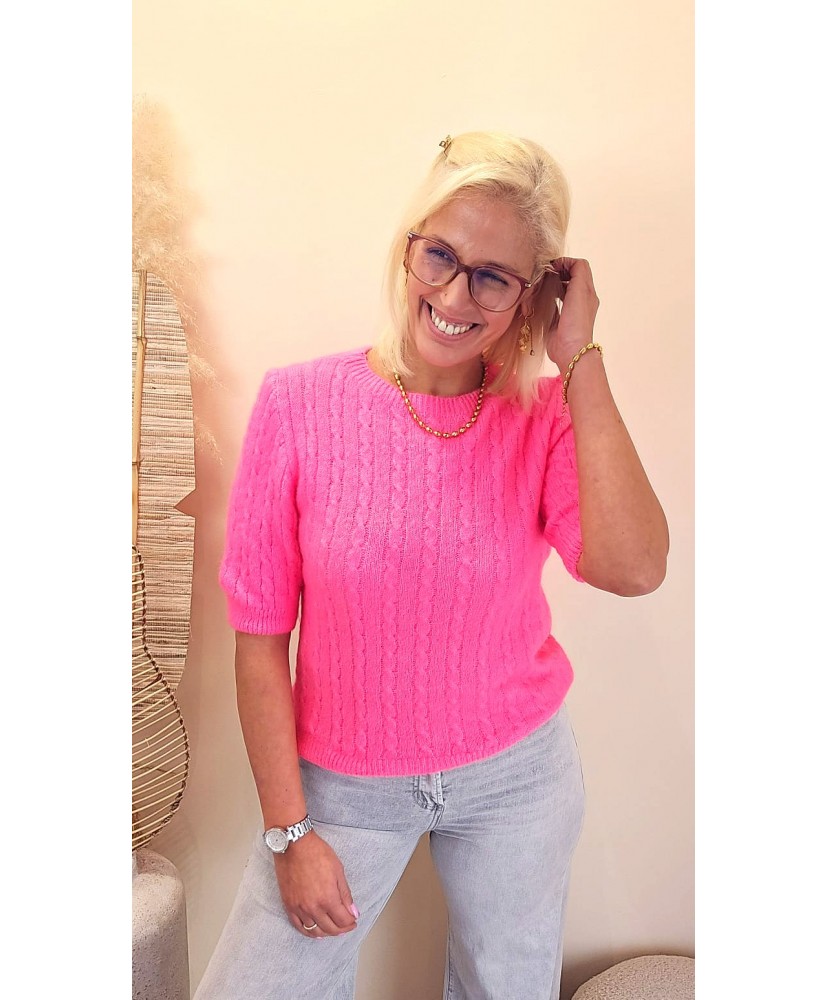 Son tricot subtilement texturé apporte du relief et du caractère, tandis que sa coupe droite légèrement ajustée met en valeur la silhouette avec élégance. Les manches mi-longues ajoutent une touche actuelle et féminine, idéale pour la mi-saison.
