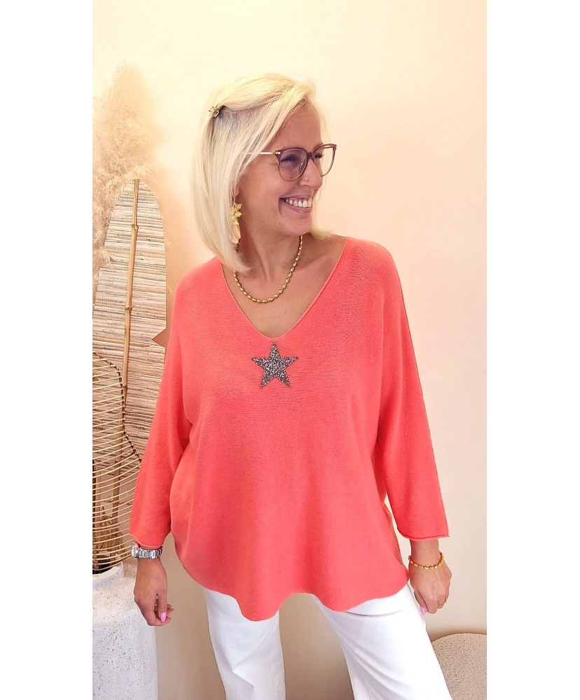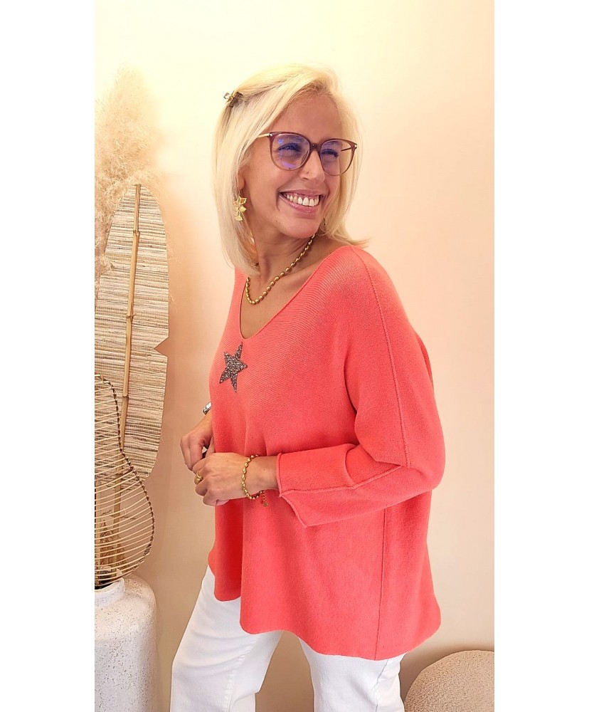 Doux, lumineux et résolument féminin, séduit par sa teinte corail délicate qui apporte fraîcheur et élégance à la silhouette. Sa maille fine et agréable à porter offre un tombé fluide et confortable, parfait pour un look chic et effortless.