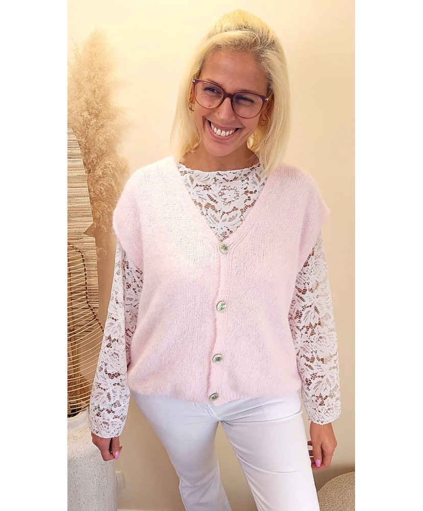 Le gilet Rose est la touche douceur qui illumine une silhouette.