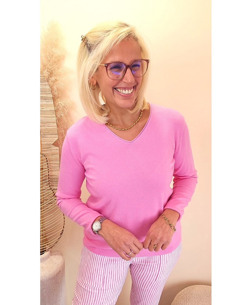 Sa maille fine et confortable épouse la silhouette sans la marquer, pour un rendu à la fois élégant et facile à porter. Son rose vibrant apporte fraîcheur, énergie et féminité au look.